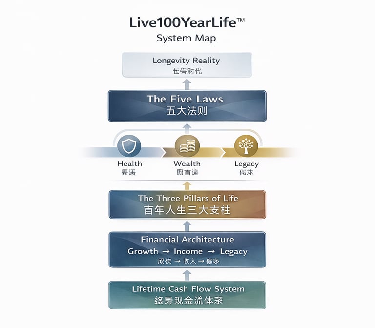 Today, many people may live to 90, 95, or even 100. Yet their financial structure, identity structure, and value structure are still built on a life model that effectively ends at 60 or 65.
