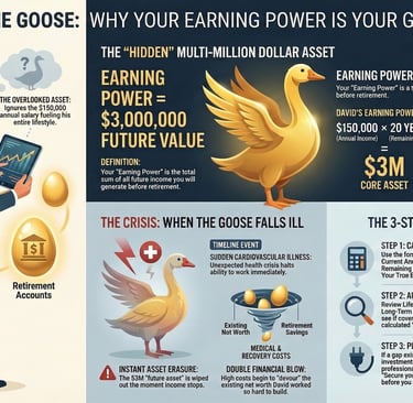 Imagine the story of David. At 45, David is the absolute breadwinner of his family. He has a million-dollar home (with a mortgage) and a few hundred thousand in his retirement accounts. David spends hours every day analyzing stock market trends, desperately trying to grow this accumulated "Net Worth."